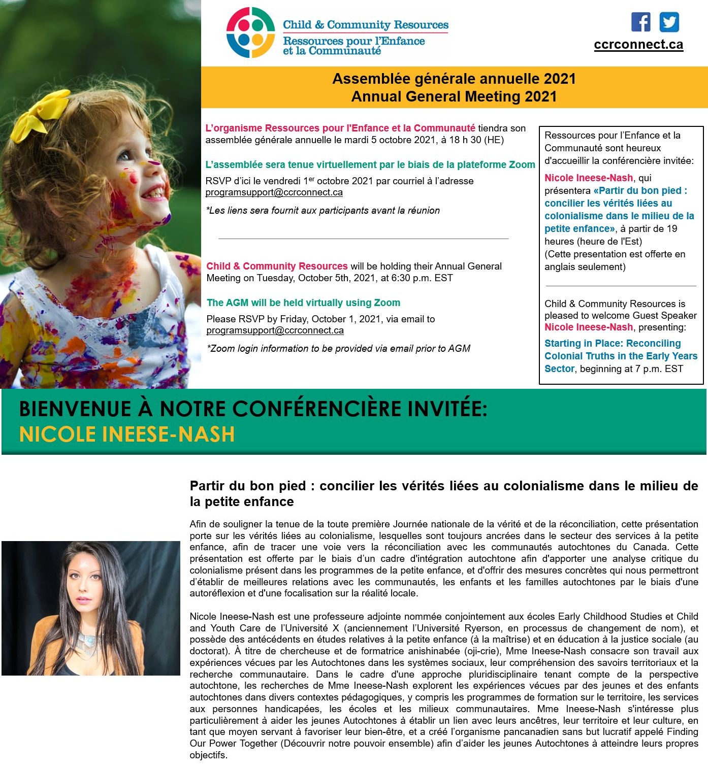 - L’organisme Ressources pour l’Enfance et la Communauté tiendra son assemblée générale annuelle le mardi 5 octobre 2021, à 18h30 (HE) – RSVP ici!